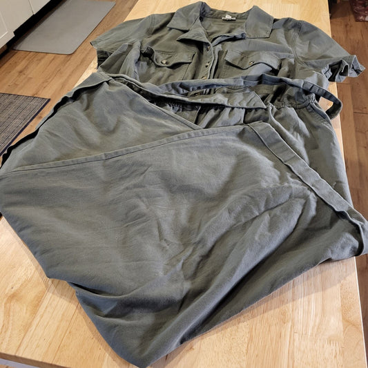 A.N.A 2X Army Green Short Sleeve Jumpsuit Button Collared Pockets Cotton