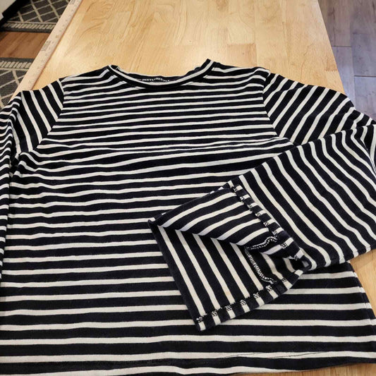 100% Pima Cotton Sweater Blue With White Stripes Ten-0h-8 Large Crew Neck Knit