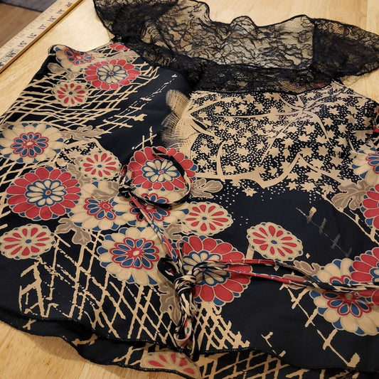 100% Silk Size 6 Floral Asian Print Blouse Lace Neck Details 18" P2P 20" Sh-Hem