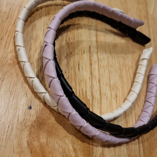 3 New Without Tags Headbands Faux Leather Wrapped Purple White Black