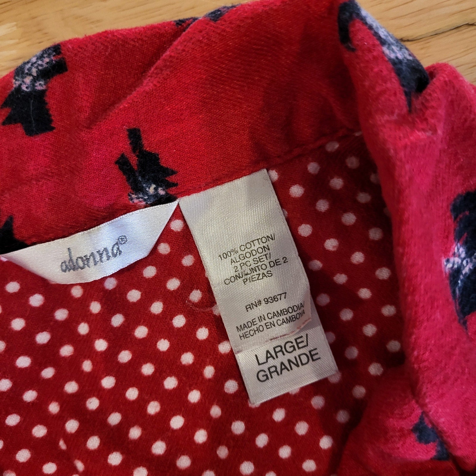Adonna Red Flannel 100% Cotton Pajama Set Yorkie Dogs Bows Large