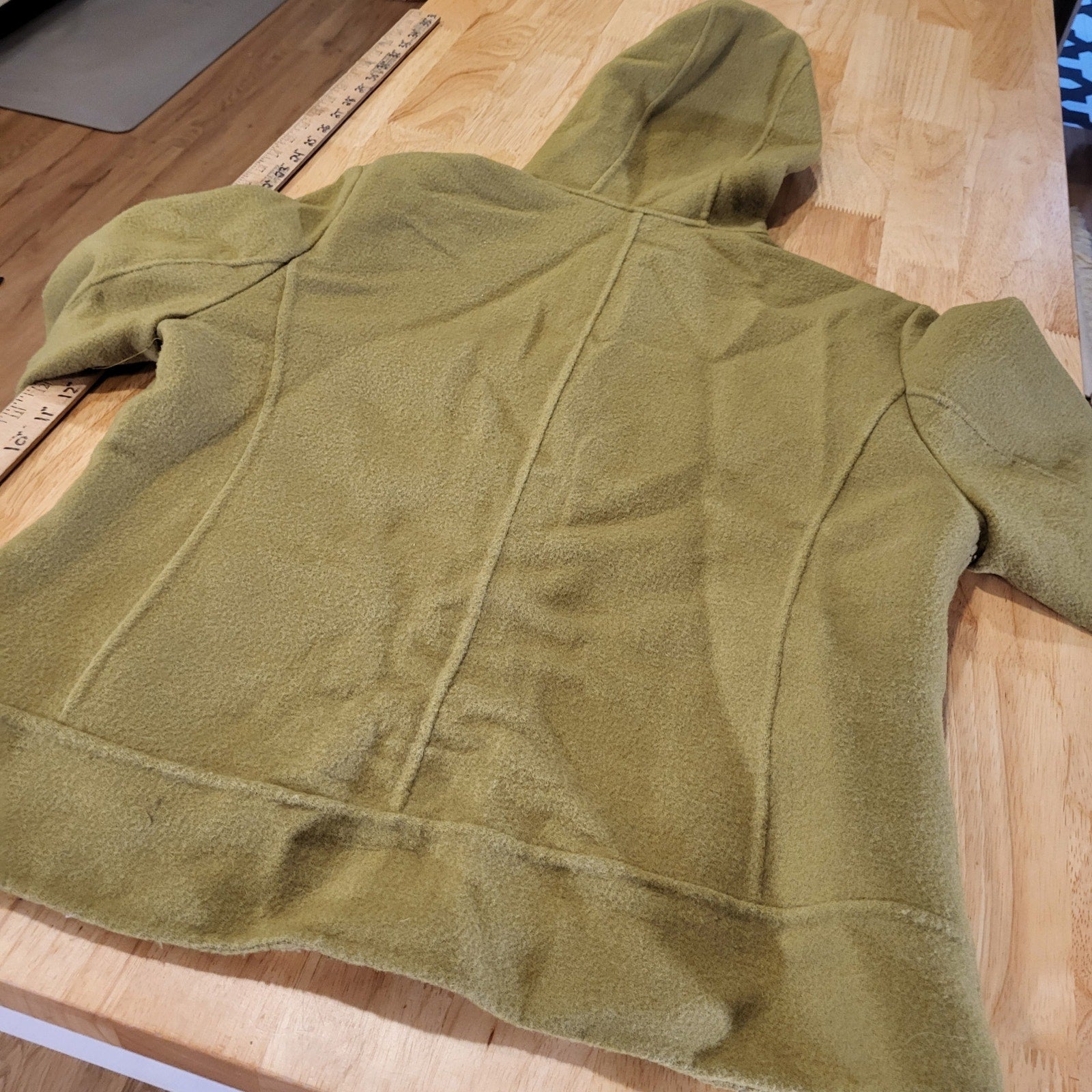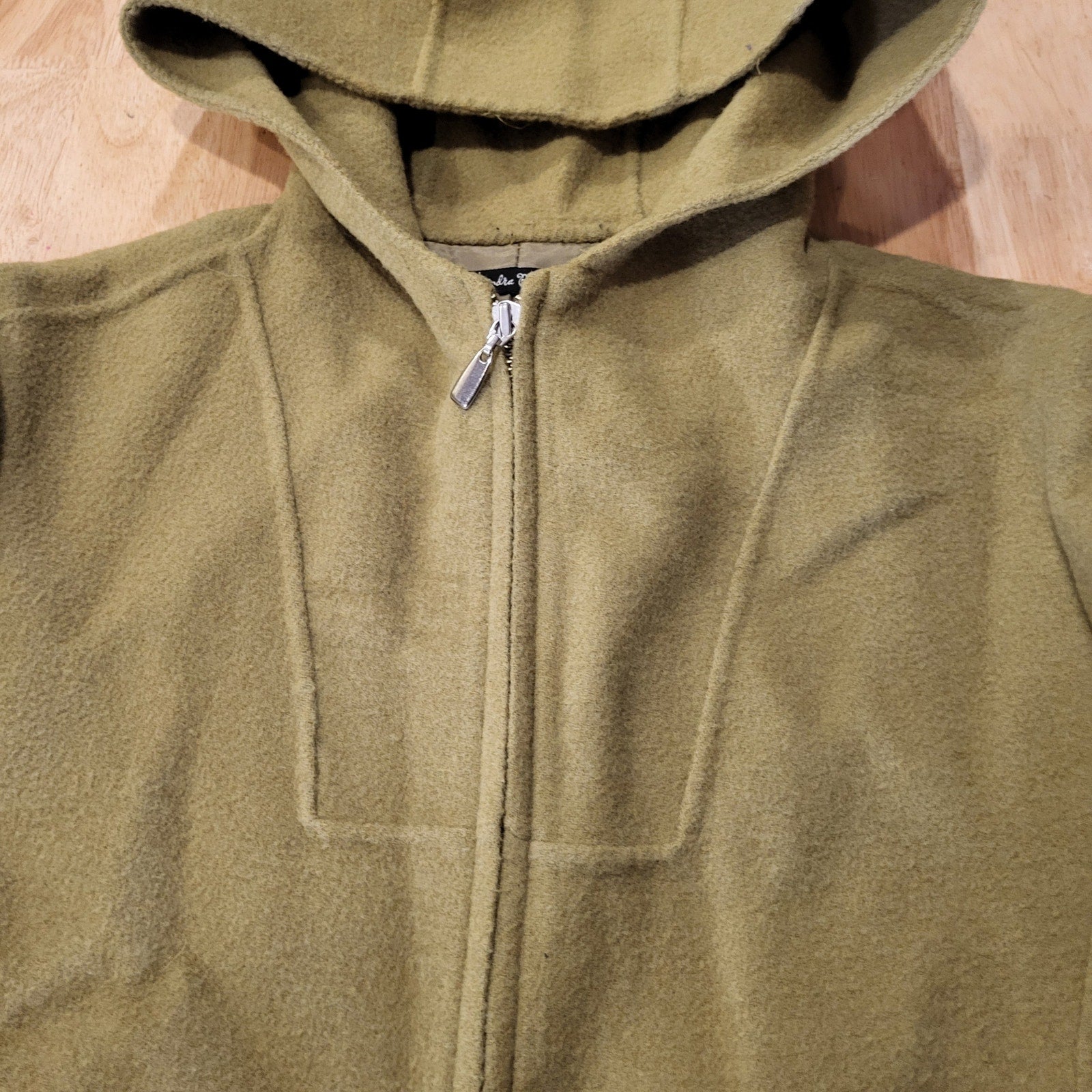 Keywords: wool zip hoodie, green wool jacket, Alexandra Bartlett coat, women’s medium hooded jacket, winter wool outerwear