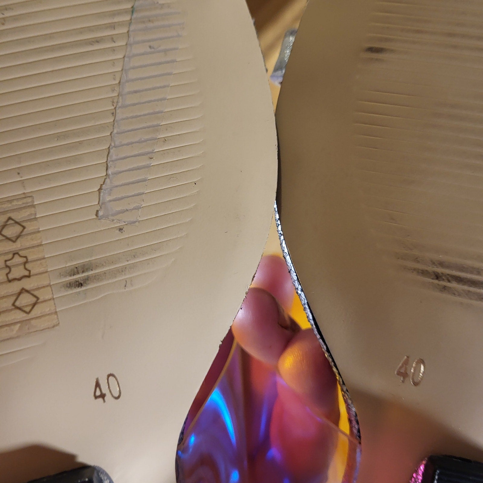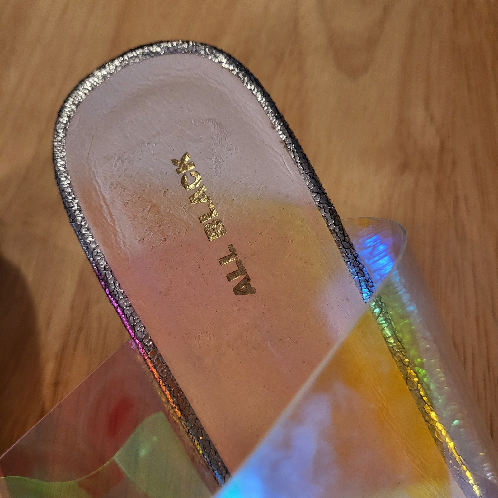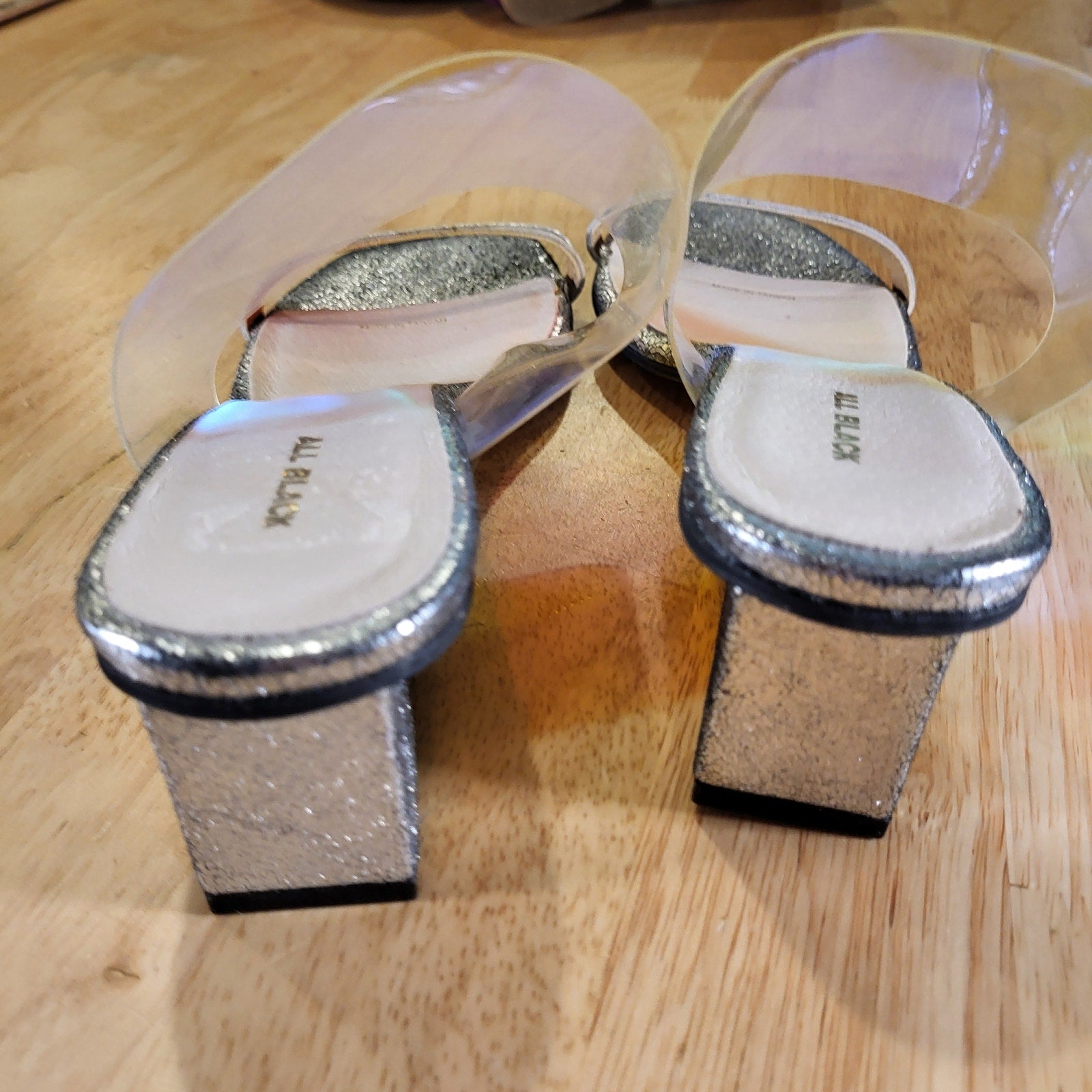 All Black Silver Metallic Iridescent Clear Band Wedge Size 40
