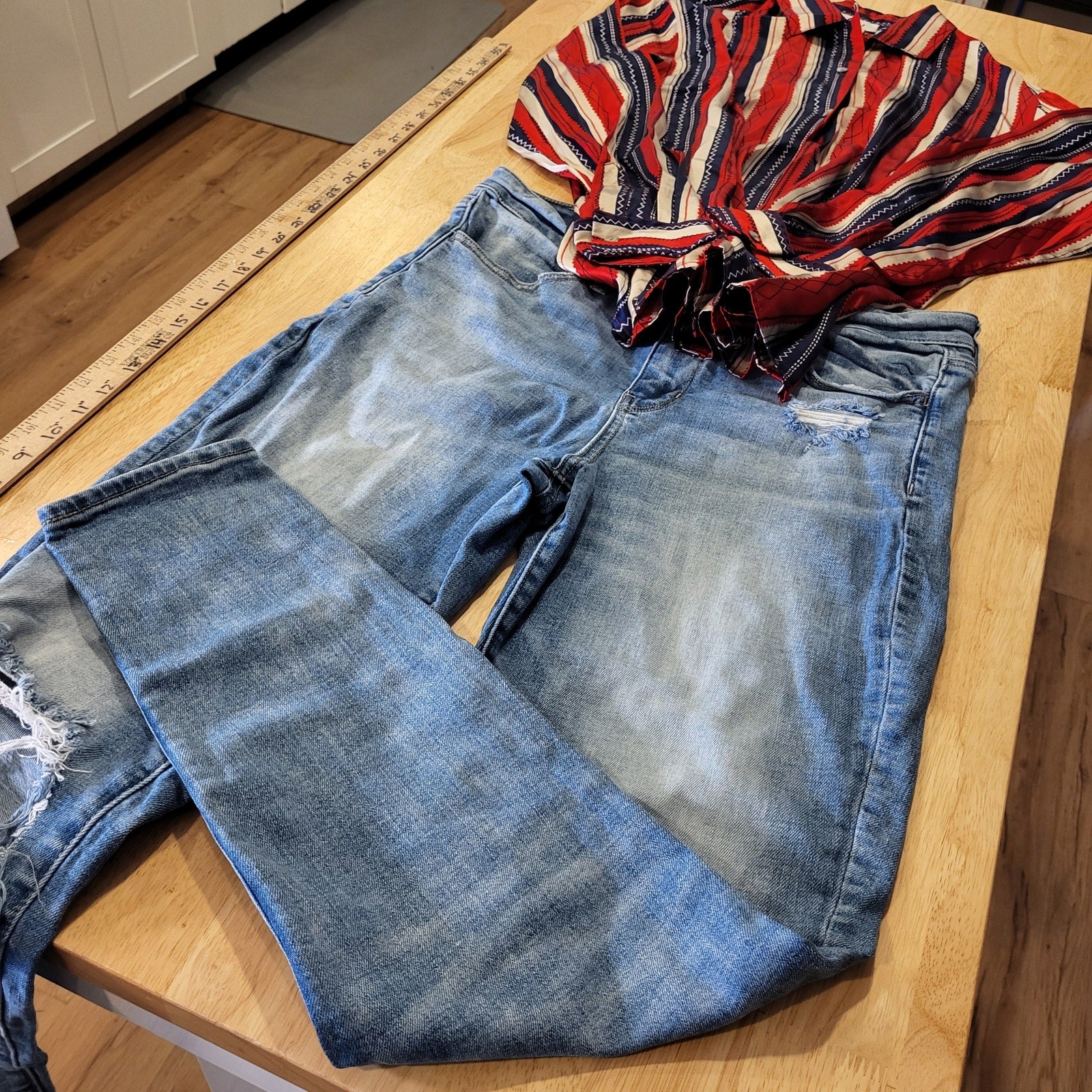 American Eagle Super Stretch Size 12 Straight Leg Distressed Medium Wash