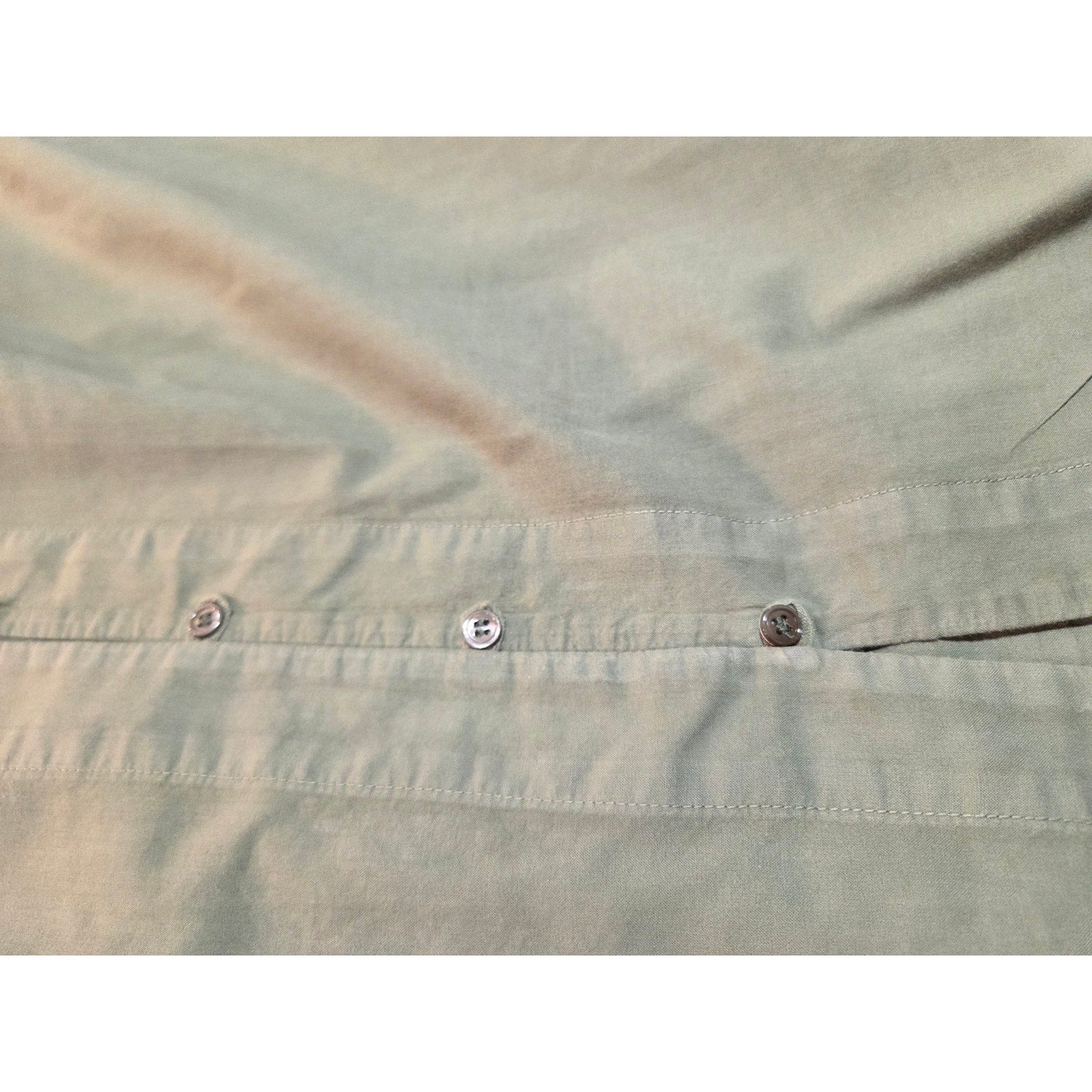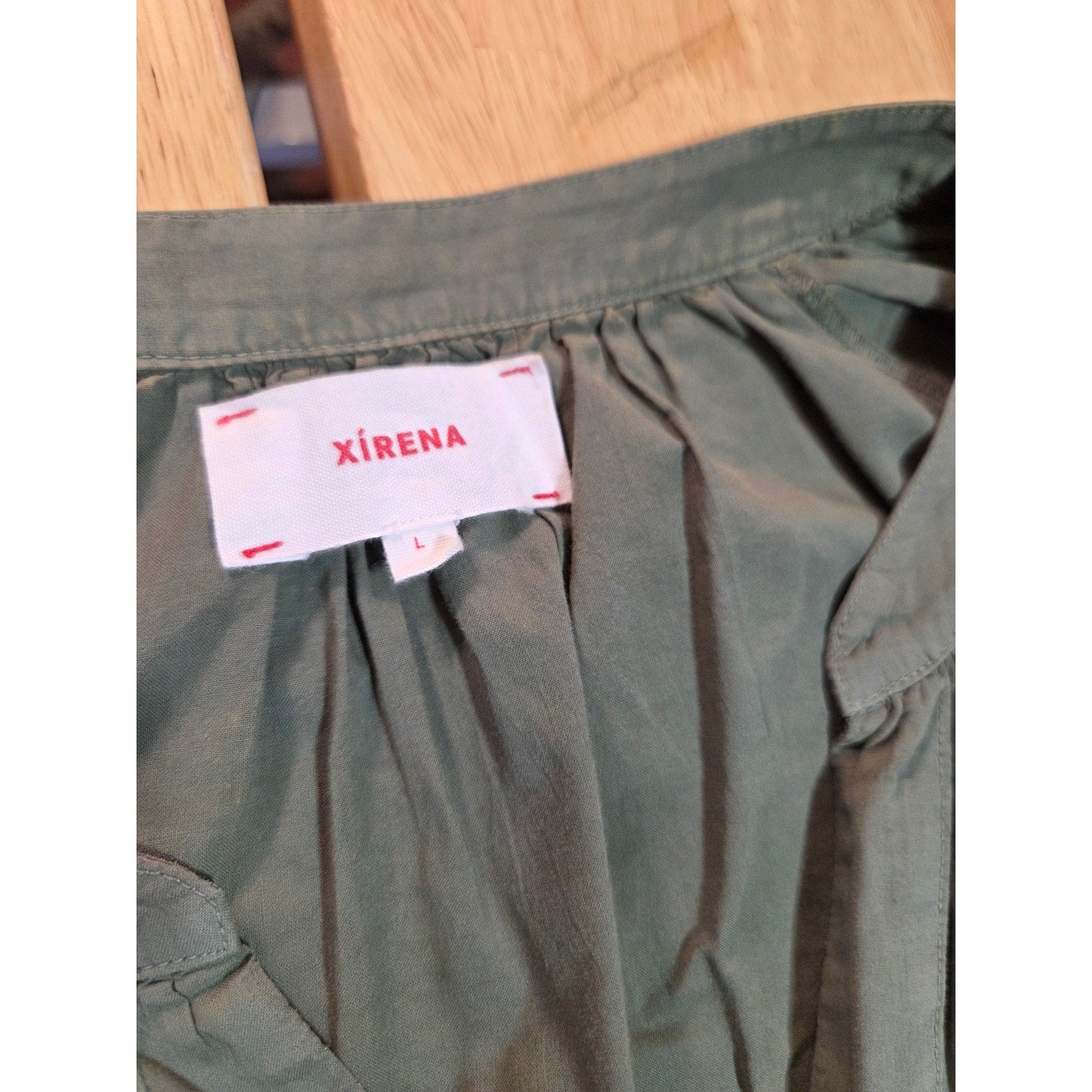 Xirena green army woven long sleeve blouse button front mandarin collar size lg